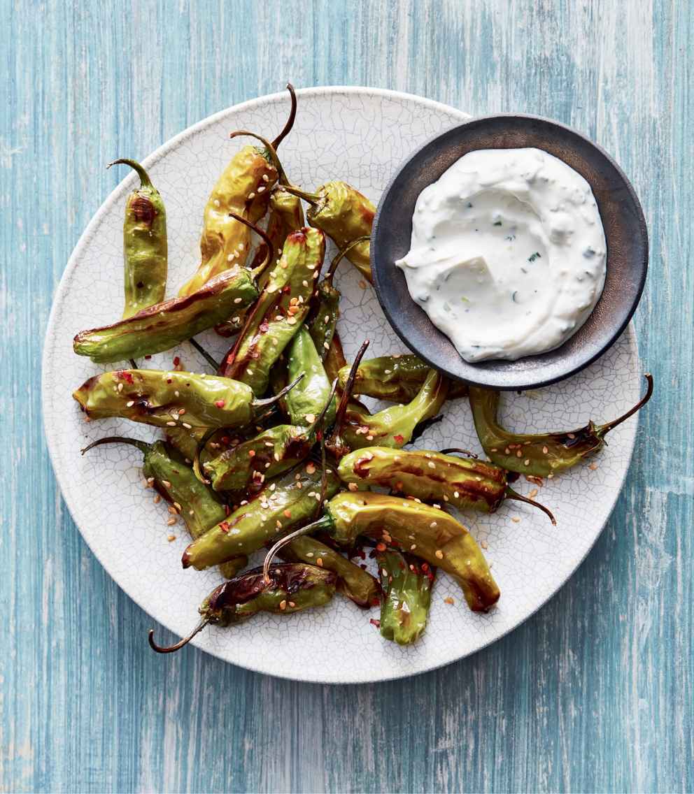 1. Drizzle the peppers with 2 tablespoons of the olive oil and place in the air fryer basket. Set the air fryer to 400°F for 10 minutes.