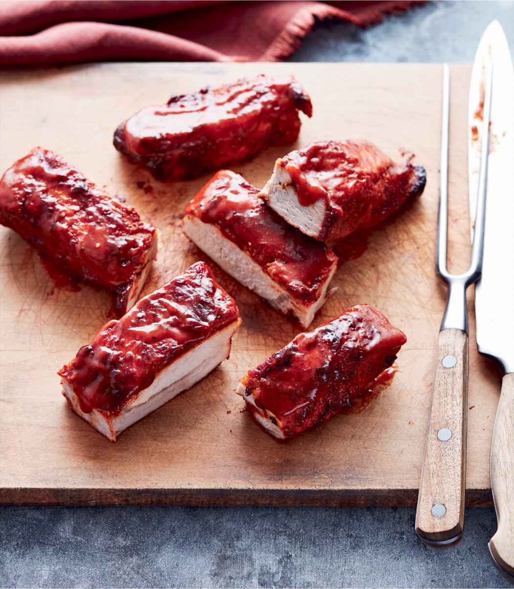 My testers were sure I had lost my mind with this flavor combination, but they are so good! We all did have trouble wrapping the bacon around the too-flexible pickle spears—until my husband, Roger, realized it was easier to lay the bacon down, spread cheese on top of it, and then roll it around the pickle spear. These reheated well, so you can make a batch and heat just before serving. Servings: 4 (2 spears each)