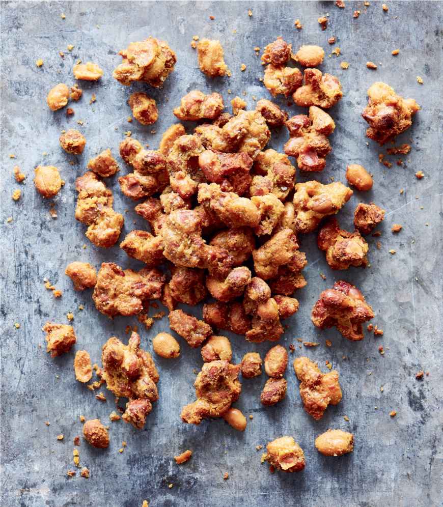 These seasoned peanuts, typically deep-fried, are a very popular Indian snack. They’re super addictive and I tend to shovel them into my mouth mindlessly. Take my advice—put some in a small bowl for yourself before you start eating, otherwise you will look up and find them all gone. You can use any other type of nut you prefer, and amp up or down the spices to your preference. Chickpea flour—also called besan —is easily found in Indian markets and whole-foods stores. Servings: 4