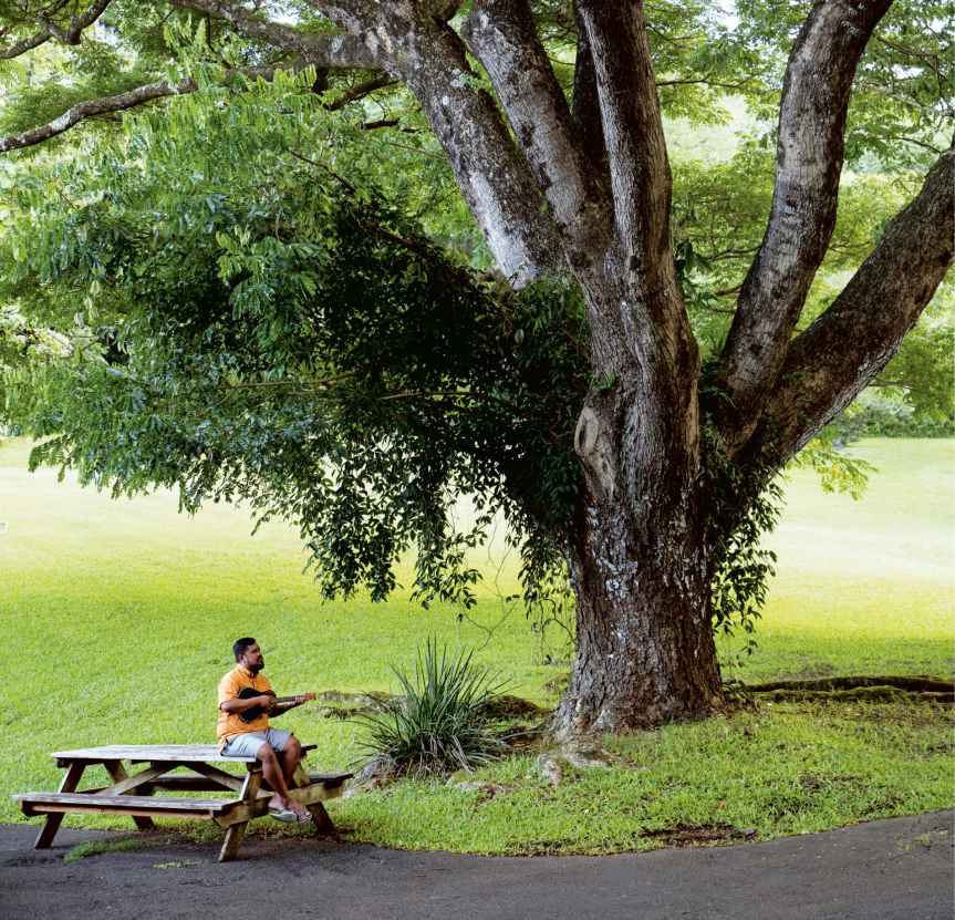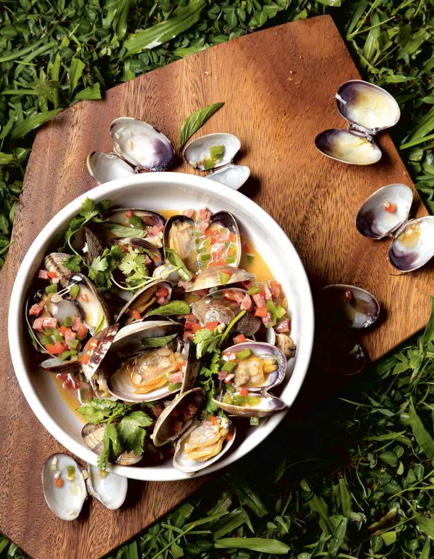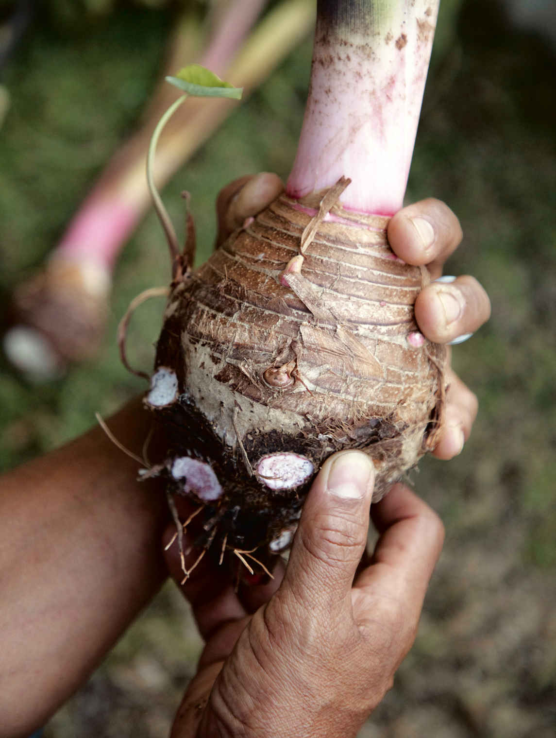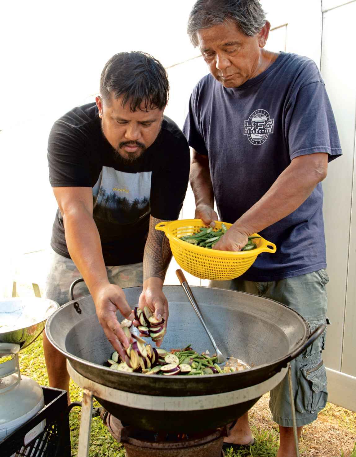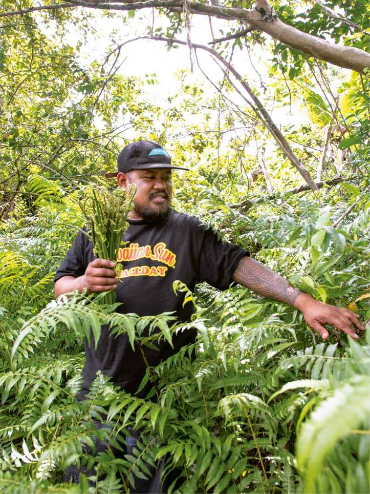 Of the six major islands that make up Hawai‘i—Kaua‘i, Oahu, Moloka‘i, Lāna‘i, Maui, and Hawai‘i (the Big Island)—the one I grew up on, the Big Island, is regarded as the most traditional in culture, the most laid-back, and certainly the one where the Hawaiian pidgin is the thickest. Here you’ve got perhaps the best growing climate in the world and fertile volcanic soil: banana trees and ti plants everywhere, taro and ginger you can pluck from the ground, and guavas and mangoes falling from the trees. Most everyone we knew either farmed, hunted, or fished. As kids, my brother and I would go up to the Hakalau Gulch and pick wild pohole , tender fiddlehead ferns. In school I’d skip class to go spearfishing with my buddies or spend the day down at the coast picking ‘opihi (limpets) or catching Samoan crabs. Or maybe one of my uncles would show up with a freshly butchered goat and we’d spend the afternoon at the house cleaning tripe. Those were the adventures you took for granted as a kid, but when you look back later you understand how unique and formative they were.