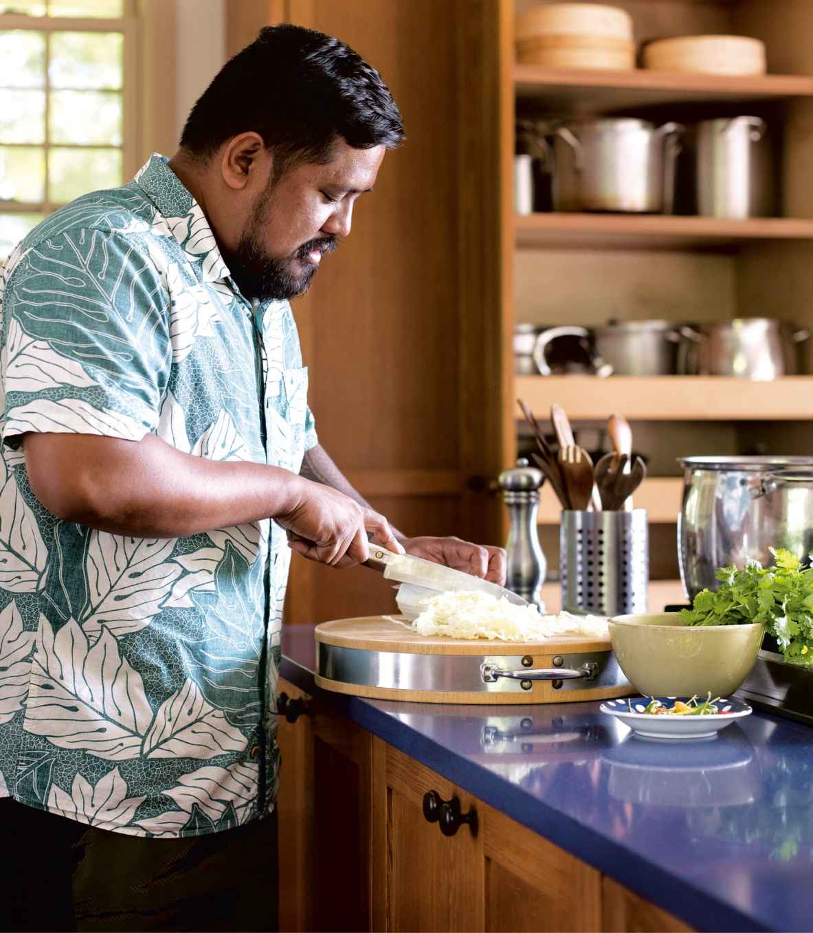SHELDON SIMEON lives on Maui and is the chef and owner of Tin Roof, where he serves local Hawai‘i favorites. His restaurant Lineage was named one of Bon Appétit ’s top 50 new restaurants. Simeon was a finalist and voted Fan Favorite on seasons 10 and 14 of Top Chef .