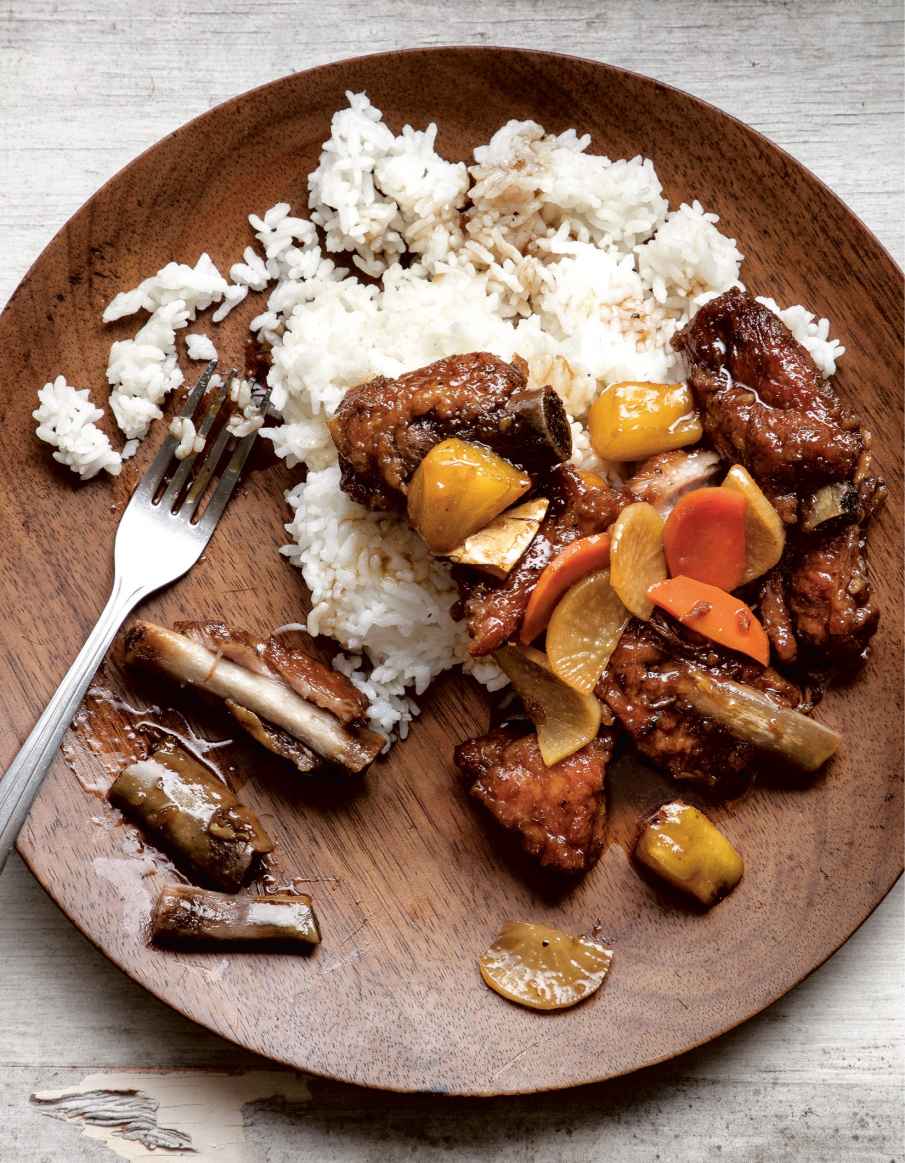 In this book, the main dishes (organized loosely by cooking method) can be eaten plate-lunch-style with rice and mac salad and maybe a pickle or vegetable. You can also mix and match with your favorite vegetables, sides, salads, and pickles from the rest of the book to make a well-rounded meal.