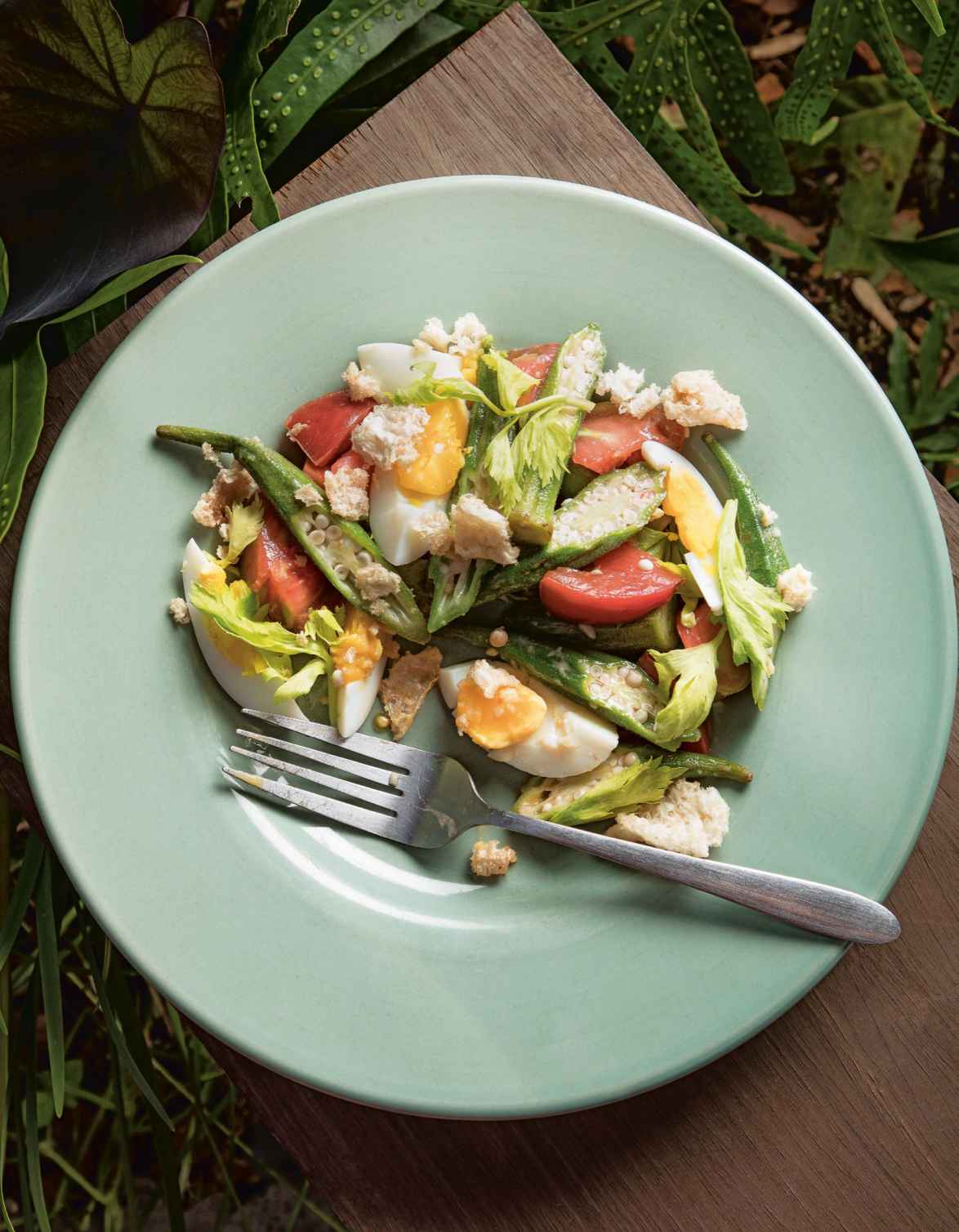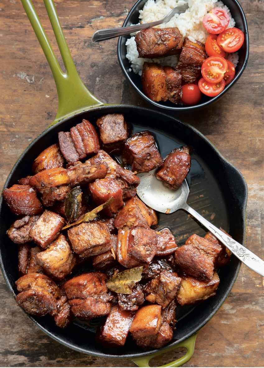 But as much as I draw inspiration from local culture at large, my family heritage is equally important to how I cook. When my grandparents came to Hawai‘i, their traditions came with them. Their recipes were based on memories from their relatively short time living in the Philippines, frozen in a time capsule forever and passed down. Like many immigrant families, their food was frugal, came from the land, and was prepared with love. Most of all they were resourceful, re-creating what they’d grown up eating using what was around them. Eventually those nostalgic old traditions merged with the new traditions they were introduced to, creating a mash-up that was rooted in the past but distinct from anywhere else—Filipino through the lens of Hawai‘i. I learned just as much from these hand-me-down lessons as I did from culinary school. As a chef I might cut the vegetables a little neater than Grandma and Grandpa did, but when it came to making sure everyone was nourished and well-fed, they were second to none.
