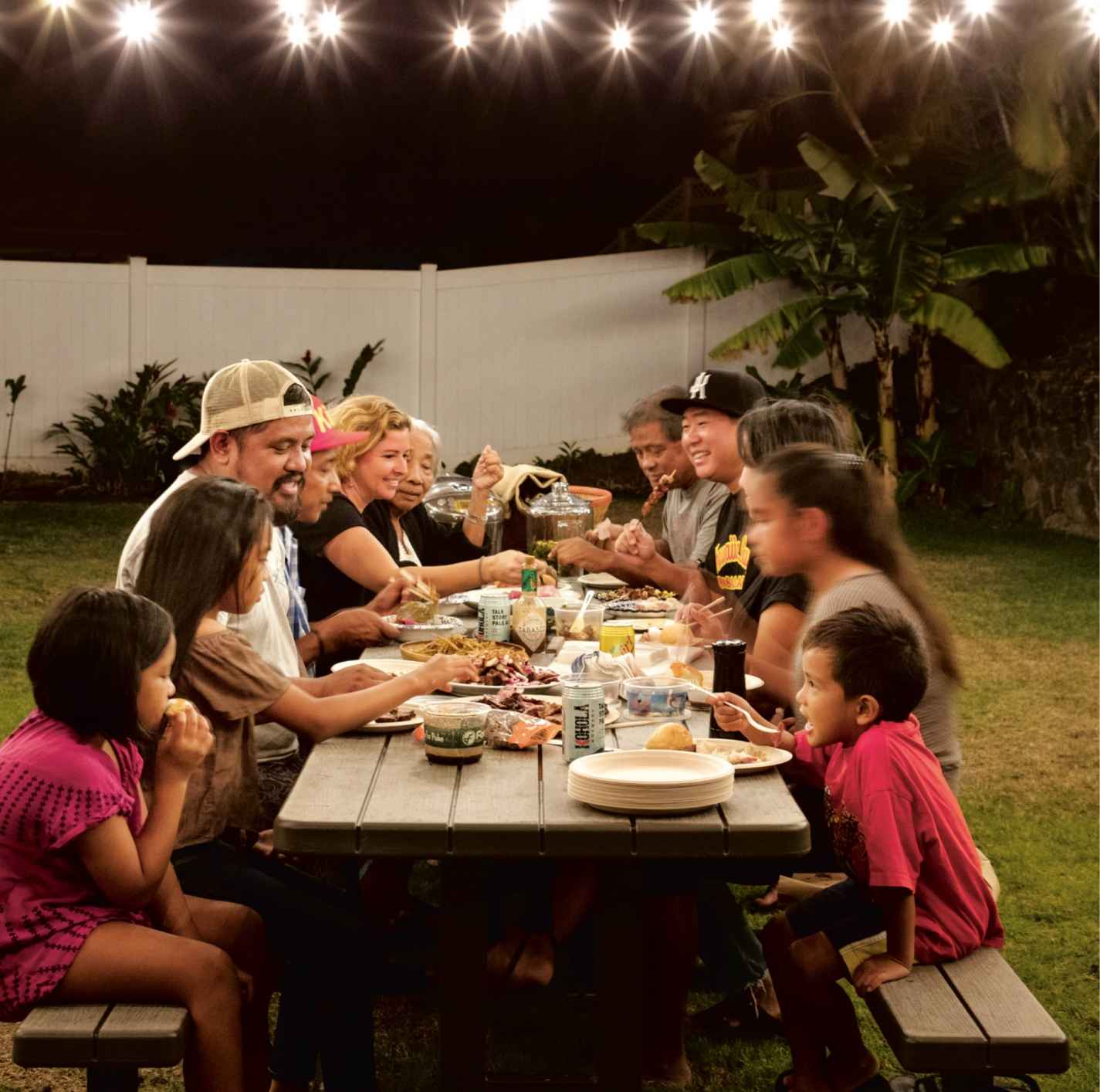 The family we talk about in Hawai‘i can mean different things, as in your blood relatives but also your distant cousins, adopted relatives, in-laws, friends, and even neighbors, all encompassed in the Hawaiian word ‘ohana . This notion of one big ‘ohana suits the diversity found here, too, made up of a hodgepodge of cultures that arrived as immigrants from countries like China, Japan, Portugal, Korea, and the Philippines. You may have heard Hawai‘i referred to as “the melting pot of the Pacific,” but that’s not entirely accurate, since it implies everything blended together into one homogenous stew. The reality is that Hawai‘i is more of a salad bowl, or better yet a plate of chop suey: each ethnicity tossed together but still distinct. Growing up, we poked fun at each other’s differences and quirks in a good-natured way, while also being aware and proud of those unique traits that made us who we are.