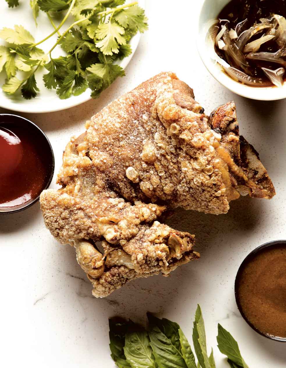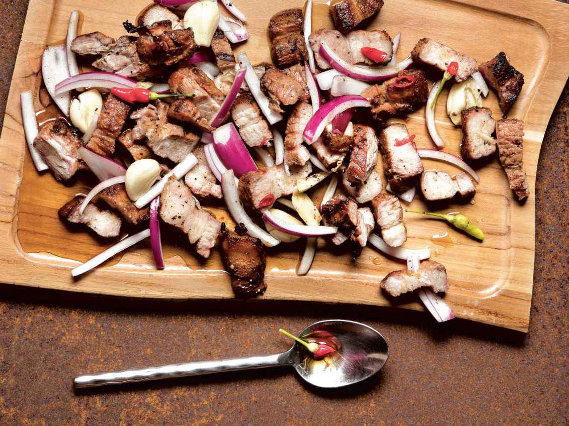 I opened a restaurant called Migrant. The name was based on the notion that everyone who came to Hawai‘i from somewhere else was a “migrant,” so the restaurant would celebrate the food of our grandparents and the cultures they brought here. On the menu there was stir-fried pancit, short rib ramen, lobster tempura, fried ‘ahi belly, tocino with pickled onions. I guess you could say that it was a pretty wild collection of dishes considering the restaurant was in a fancy Wailea hotel, but I was learning to let go of what I thought people expected and cook what felt right to me.