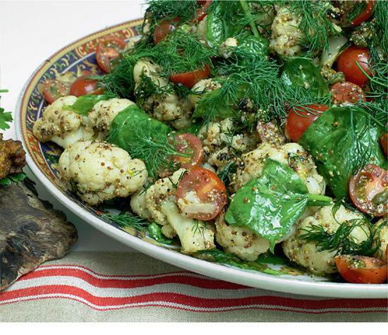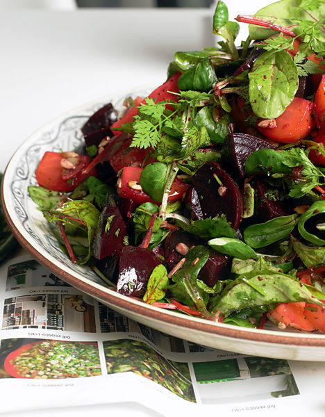 If you are not put off by this, however, you will find this salad one of the most gratifying dishes you can possibly make. It is astonishingly fresh and actually makes you feel as if you are doing yourself a giant favor by eating it. Serve at the end of a substantial meal, before or instead of dessert. Otherwise, offer it alongside a hefty nonvegetarian main course. A small portion would suffice to clean the palate and make you feel a ton lighter.