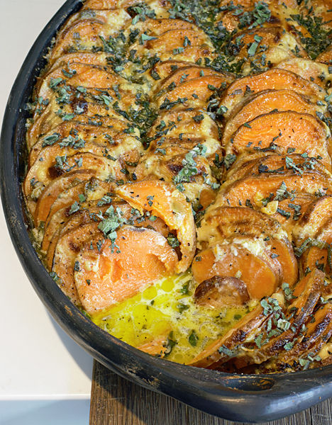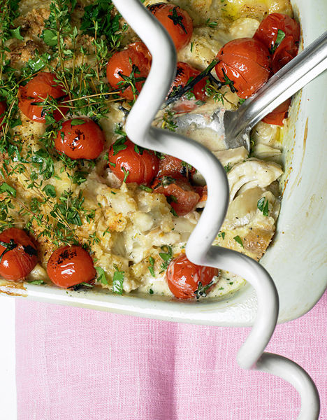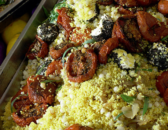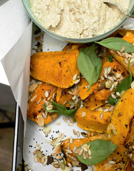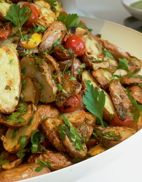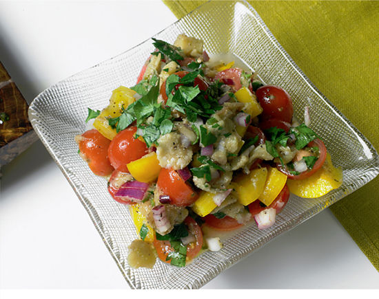 This is an ideal brunch dish for a warm spring day. With the tahini sauce and bread, it makes a modest meal in itself; without them, a colorful salad—light, refreshing, and wholesome.