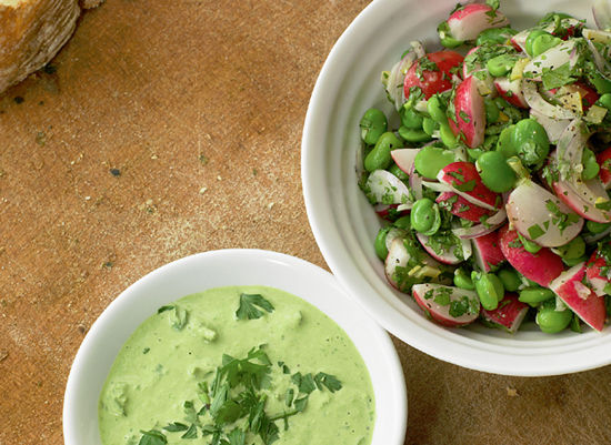 Quartered radishes make a good colorful addition. Serve with other salads on a meze plate, take with you on a picnic, or eat with roast lamb or pork.