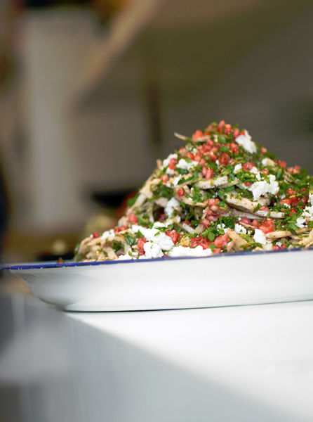 This salad is a little festival in itself. The fennel and tarragon, with their echoing flavors, form a solid base on which stronger colors and flavors—pomegranate, feta, sumac—manifest themselves without overwhelming the whole salad. It is distinctly fresh and goes well with roast meats and grilled fish. Crusty bread is almost obligatory to soak up the juices from the plate.