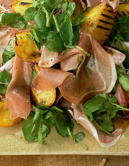 Yellow-fleshed peaches are normally less watery than the white variety, so they will grill more readily. Grilling, though, is not essential. It will add to the presentation and give a slight smokiness, but you can choose to skip this step.