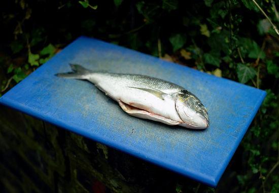 2 Remove the leaves of the fennel, keeping a few for garnish later, and trim the base, making sure you leave enough of it still attached to hold the slices together. Slice very thinly lengthwise (a mandoline would come in handy here).
