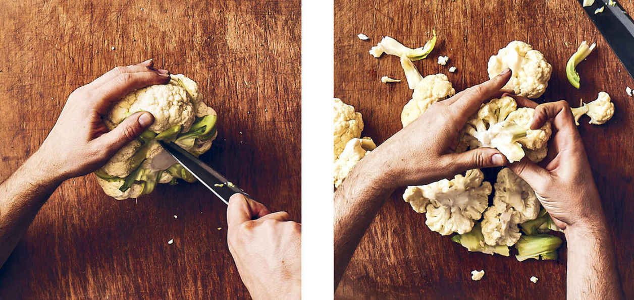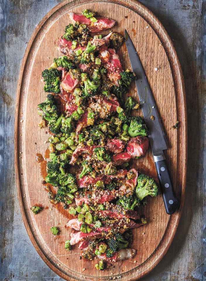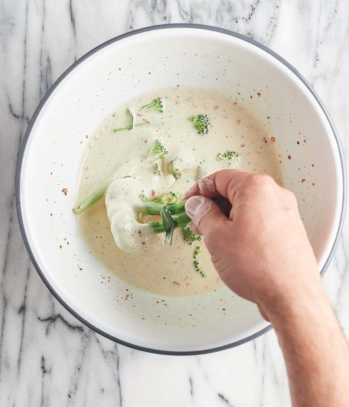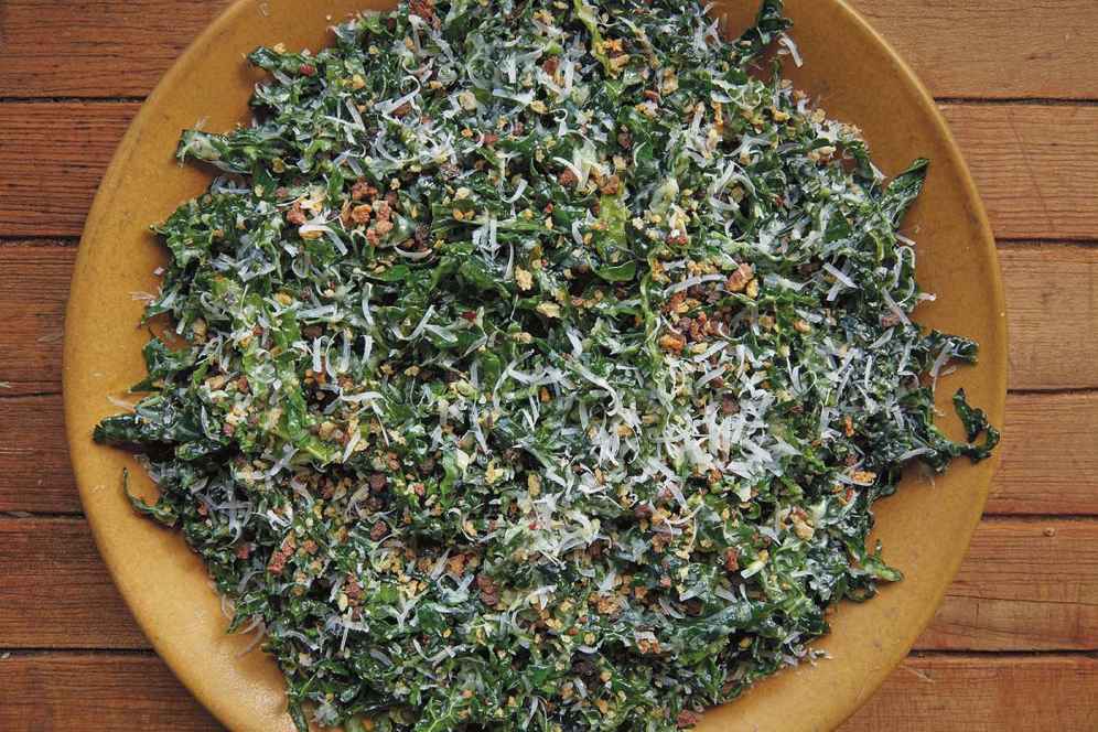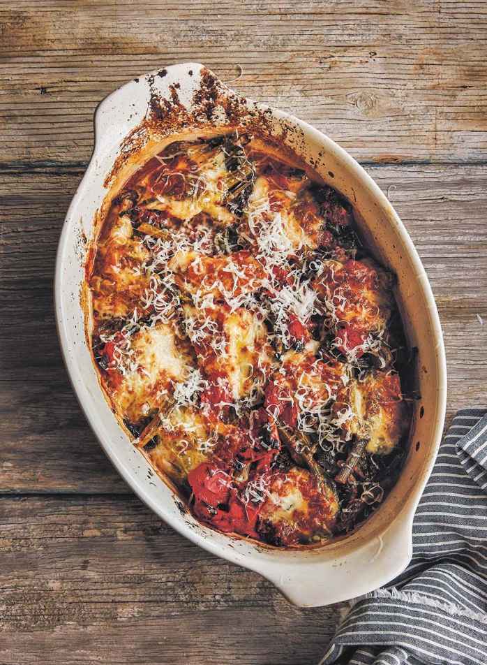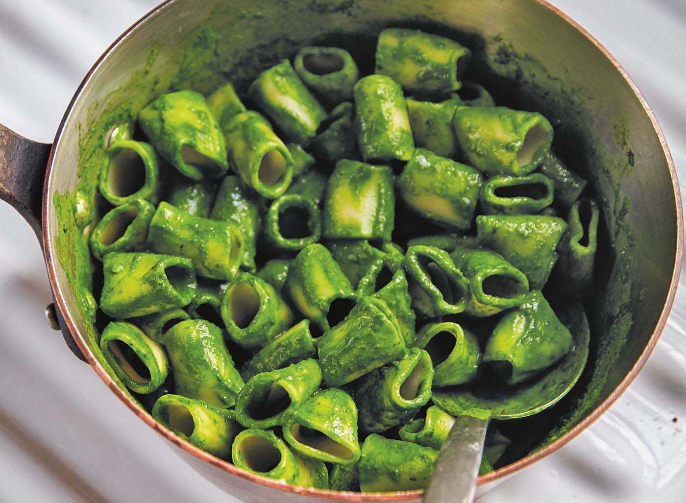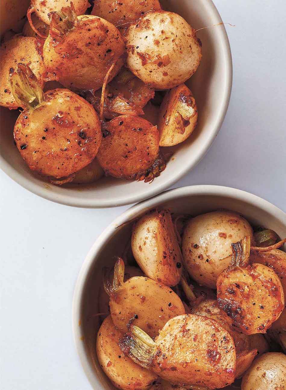 Here’s what I learned: Season (usually with salt, pepper, chile flakes, some kind of acid) before you add the fat, which in 95 percent of the recipes in this book will be olive oil. Dial in the flavors through a few rounds of tinkering, tasting, and tinkering again. The goal, says Joshua, is for the dish to taste “like a potato chip.” Meaning so tasty and savory that you can’t help but take one more bite . . . and then another.
