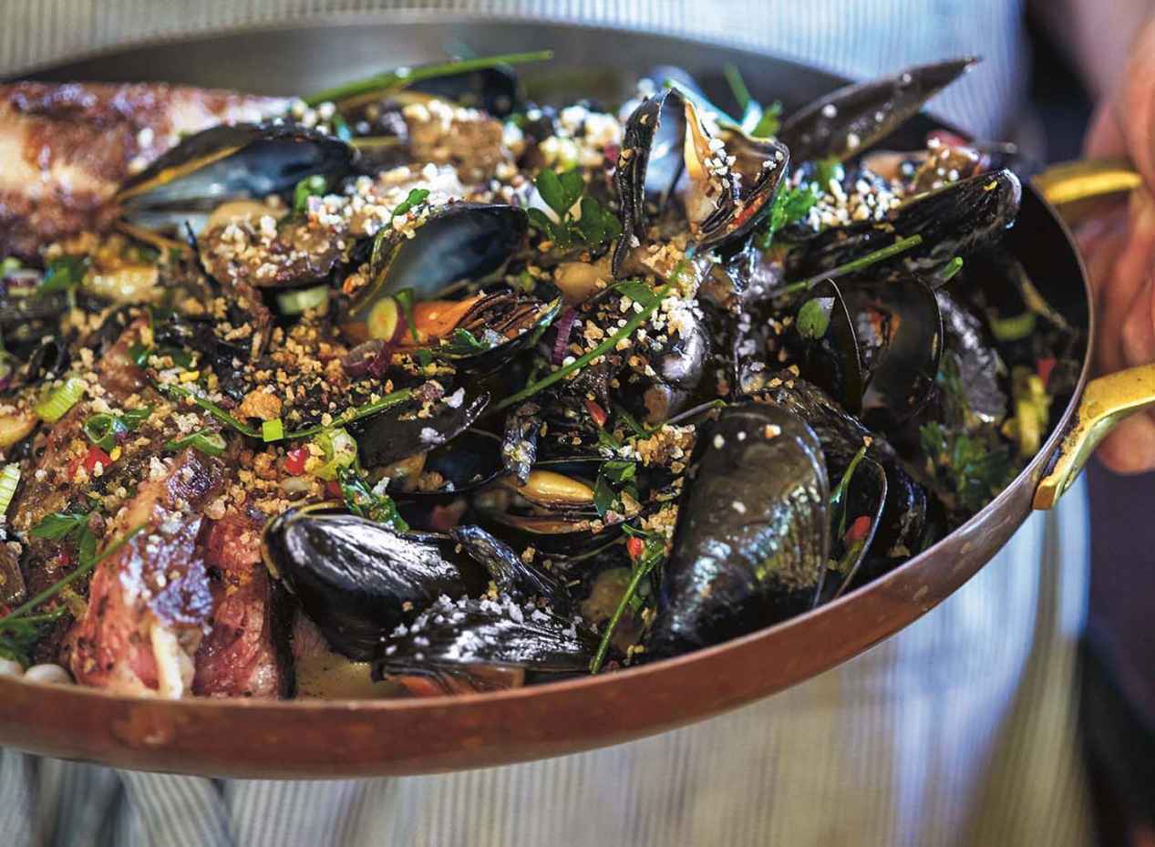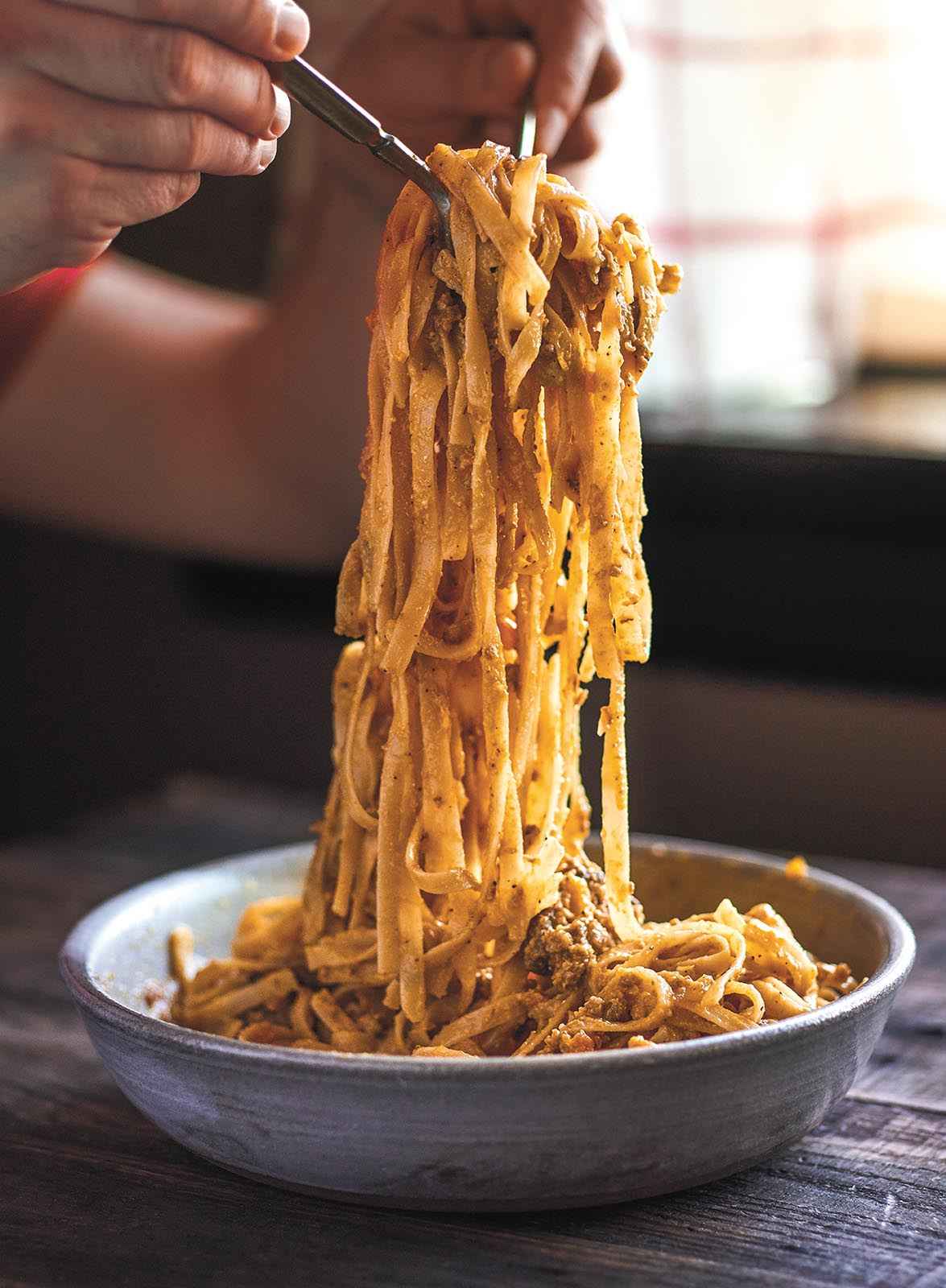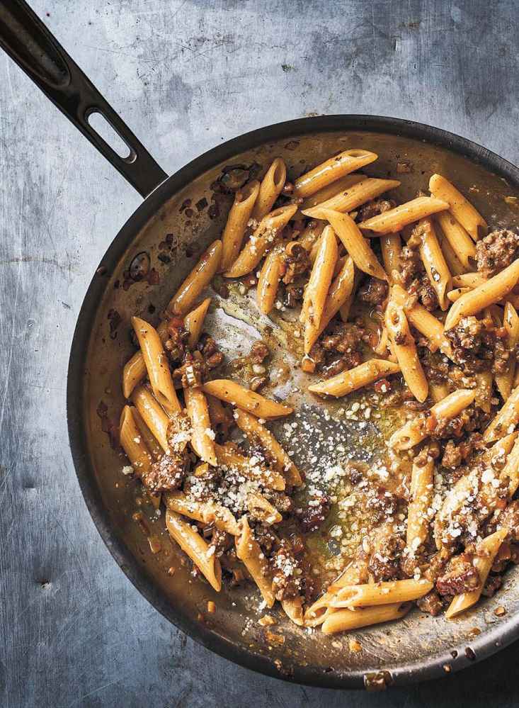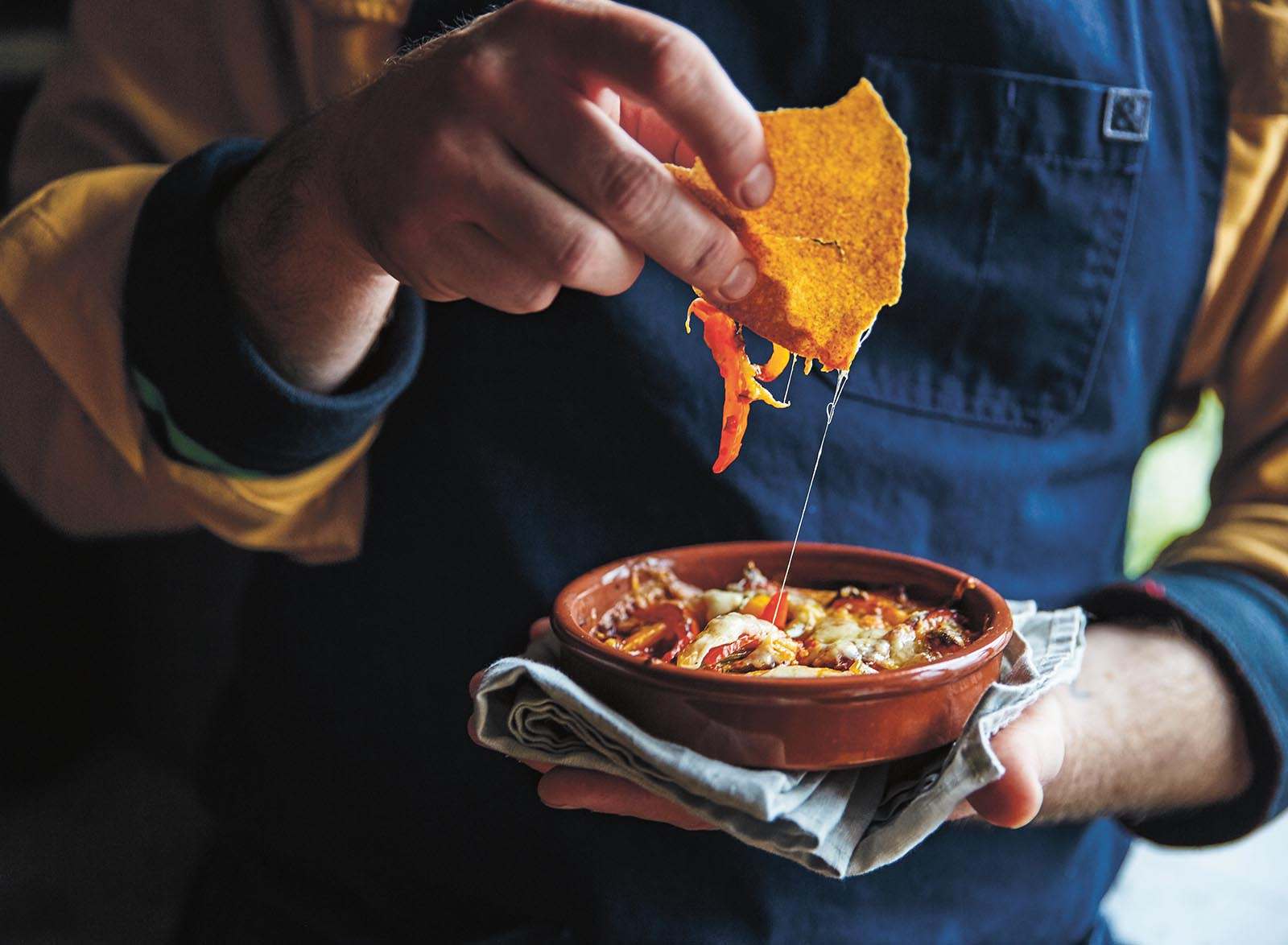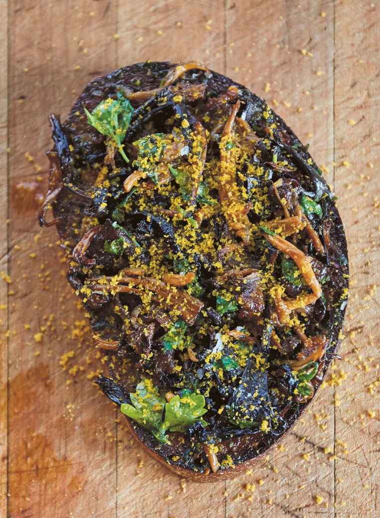 Here’s what I learned: Season (usually with salt, pepper, chile flakes, some kind of acid) before you add the fat, which in 95 percent of the recipes in this book will be olive oil. Dial in the flavors through a few rounds of tinkering, tasting, and tinkering again. The goal, says Joshua, is for the dish to taste “like a potato chip.” Meaning so tasty and savory that you can’t help but take one more bite . . . and then another.