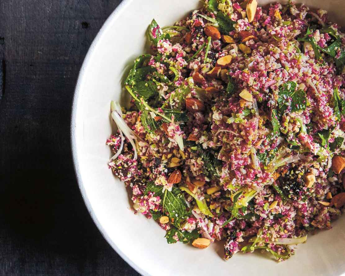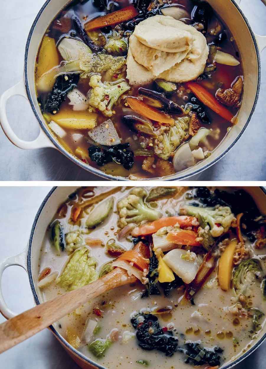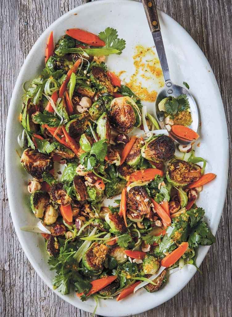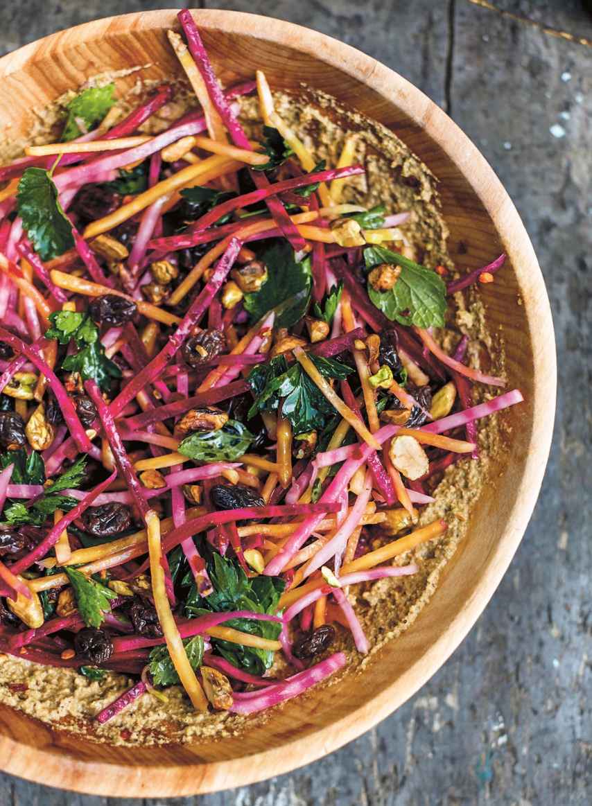 One brilliant aspect of vegetables is that you can feature them in every place in the meal, from appetizers like my Rainbow Chard with Garlic and Jalapeño, to salads like Little Gem Lettuce with Lemon Cream, Spring Onion, Radish, Mint, and Breadcrumbs to slaws—please try the Beet Slaw with Pistachios and Raisins. It will change your life. Soups in every season, main dishes that are vegetarian . . . or not (I do use meat and seafood in some recipes, and I use anchovies and fish sauce), even desserts, like the parsnip cake mentioned earlier and a perfect-for-Thanksgiving Carrot Pie in a Pecan Crust.