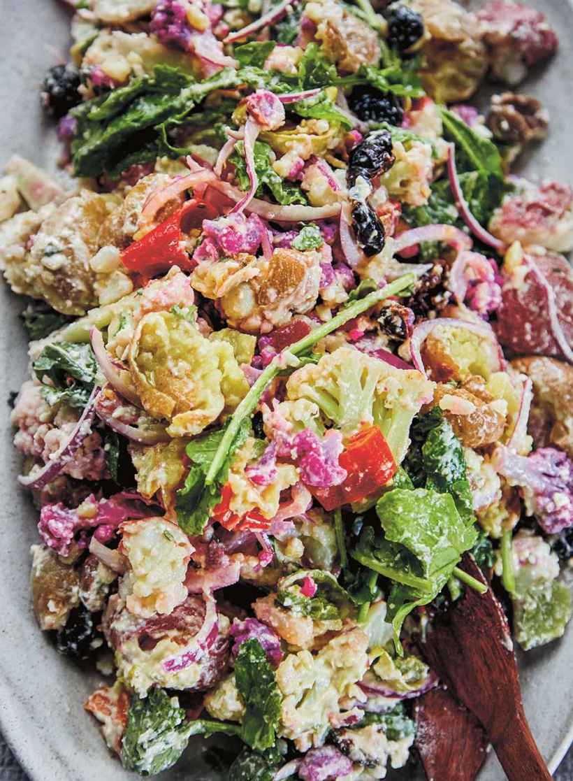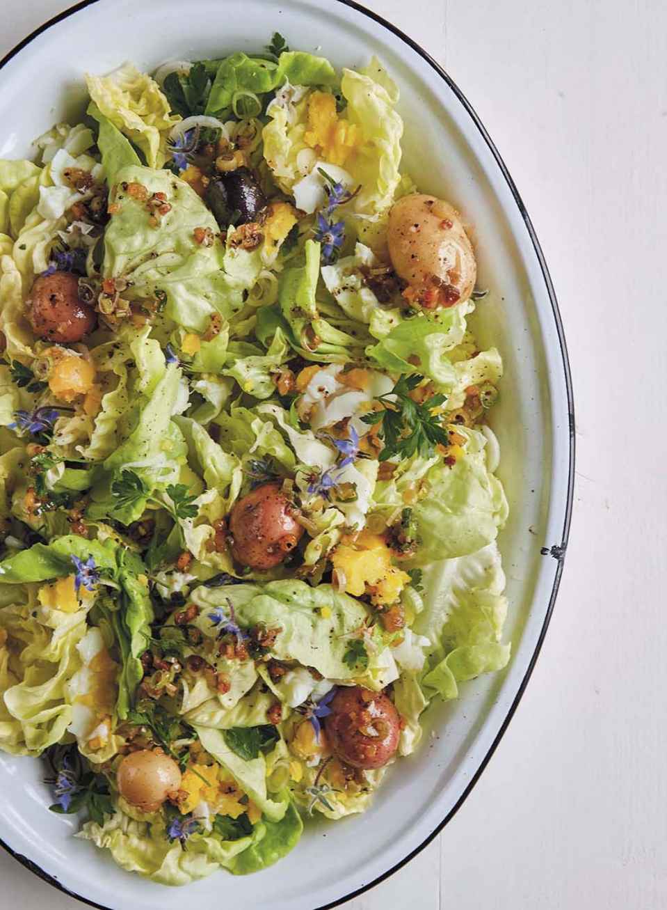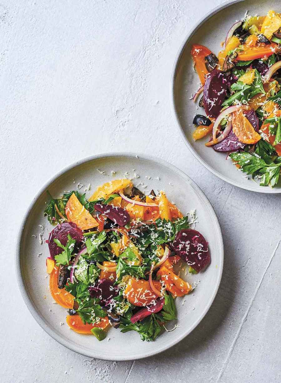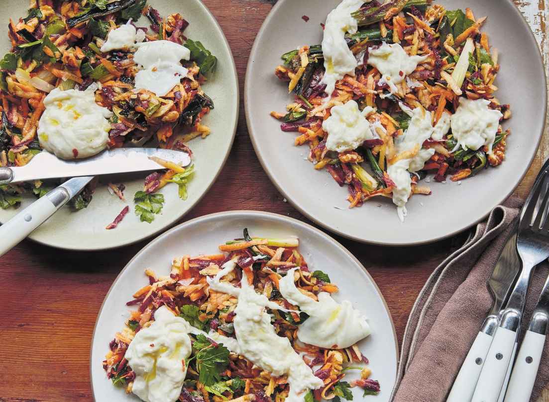 One brilliant aspect of vegetables is that you can feature them in every place in the meal, from appetizers like my Rainbow Chard with Garlic and Jalapeño, to salads like Little Gem Lettuce with Lemon Cream, Spring Onion, Radish, Mint, and Breadcrumbs to slaws—please try the Beet Slaw with Pistachios and Raisins. It will change your life. Soups in every season, main dishes that are vegetarian . . . or not (I do use meat and seafood in some recipes, and I use anchovies and fish sauce), even desserts, like the parsnip cake mentioned earlier and a perfect-for-Thanksgiving Carrot Pie in a Pecan Crust.