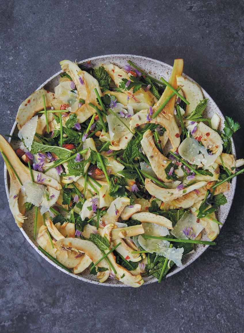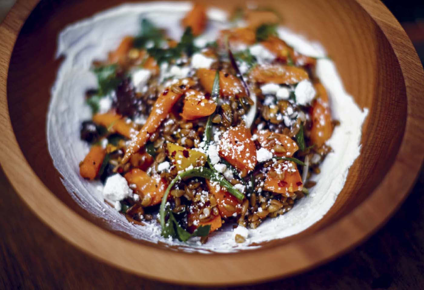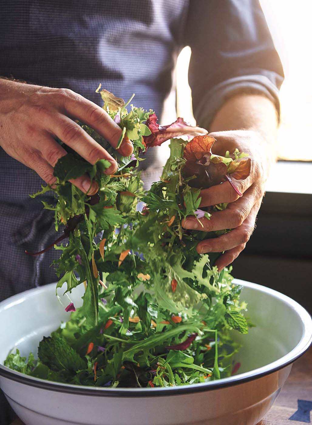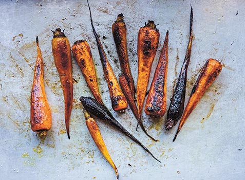 And as chefs are recognizing the old farmhouse virtues of eating nose-to-tail with meat so as not to waste any part of the animal, I aim for eating leaf-to-root with many vegetables. When you think “carrot,” you may think orange, but I also think green. Early in the year, carrots come with lacy tops that are delicious, such as in my Pan-Roasted Carrots with Carrot-Top Salsa Verde, Avocado, and Seared Squid. All roots have edible greens, so catch them early when they’re tender.