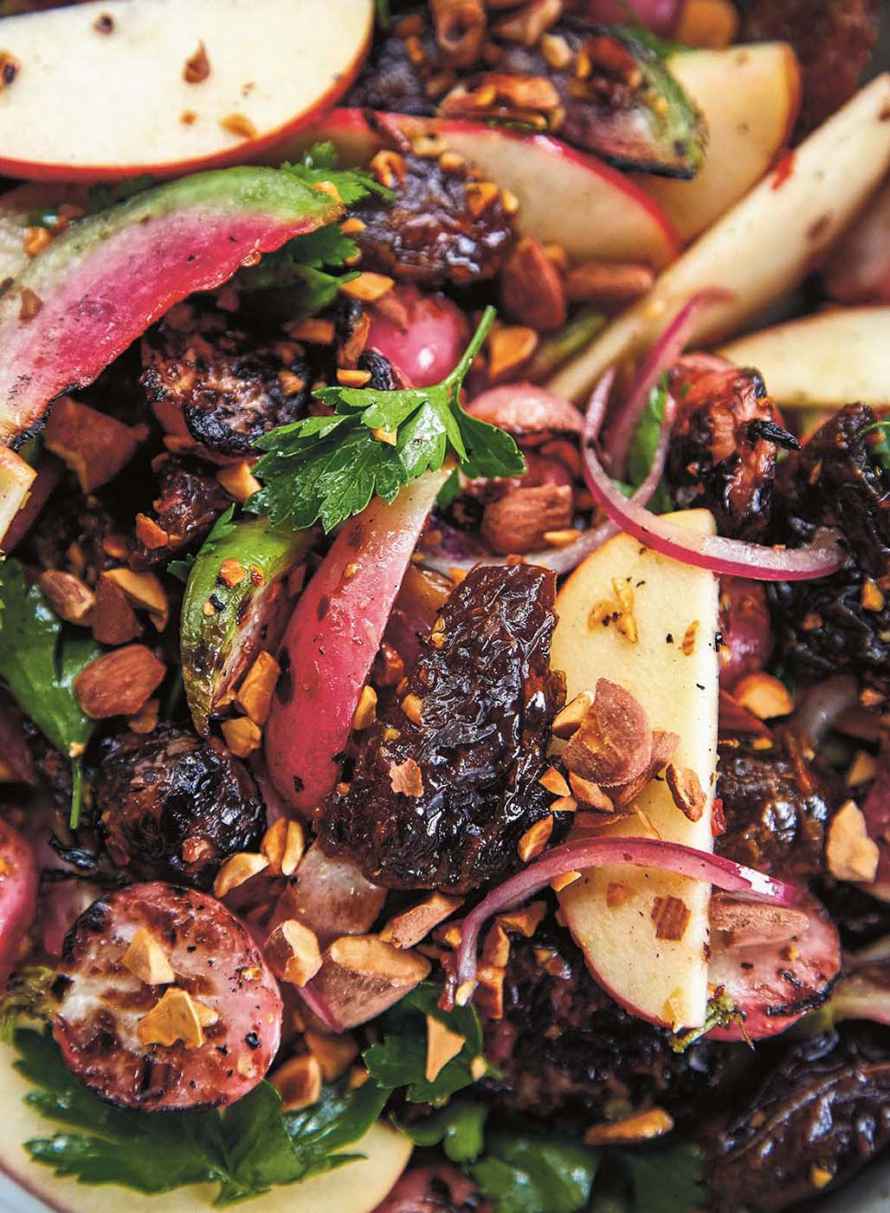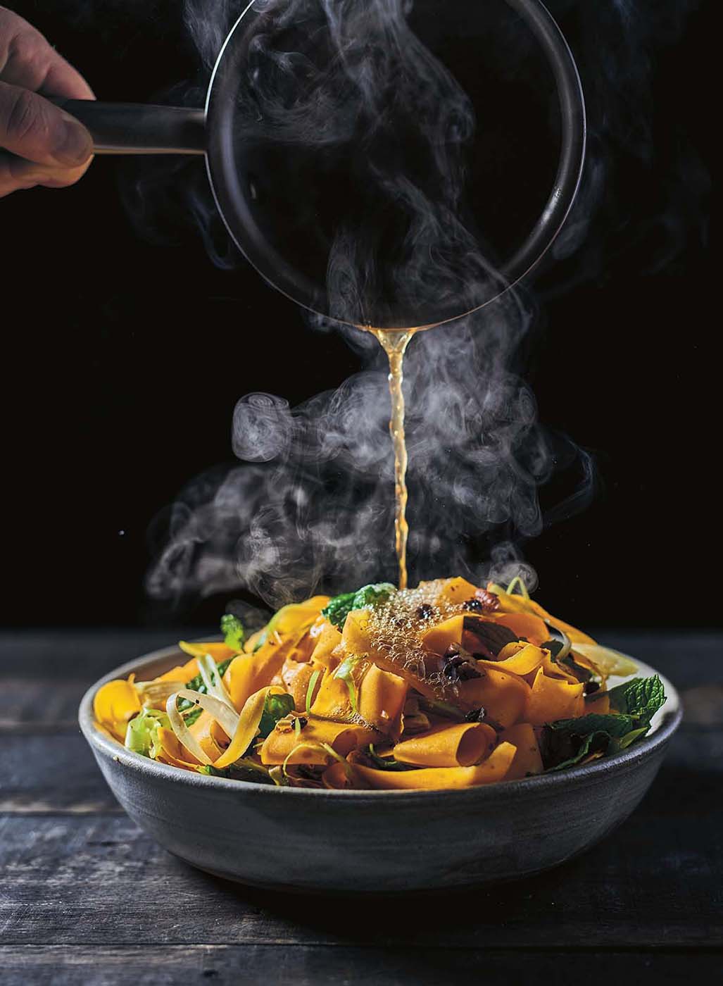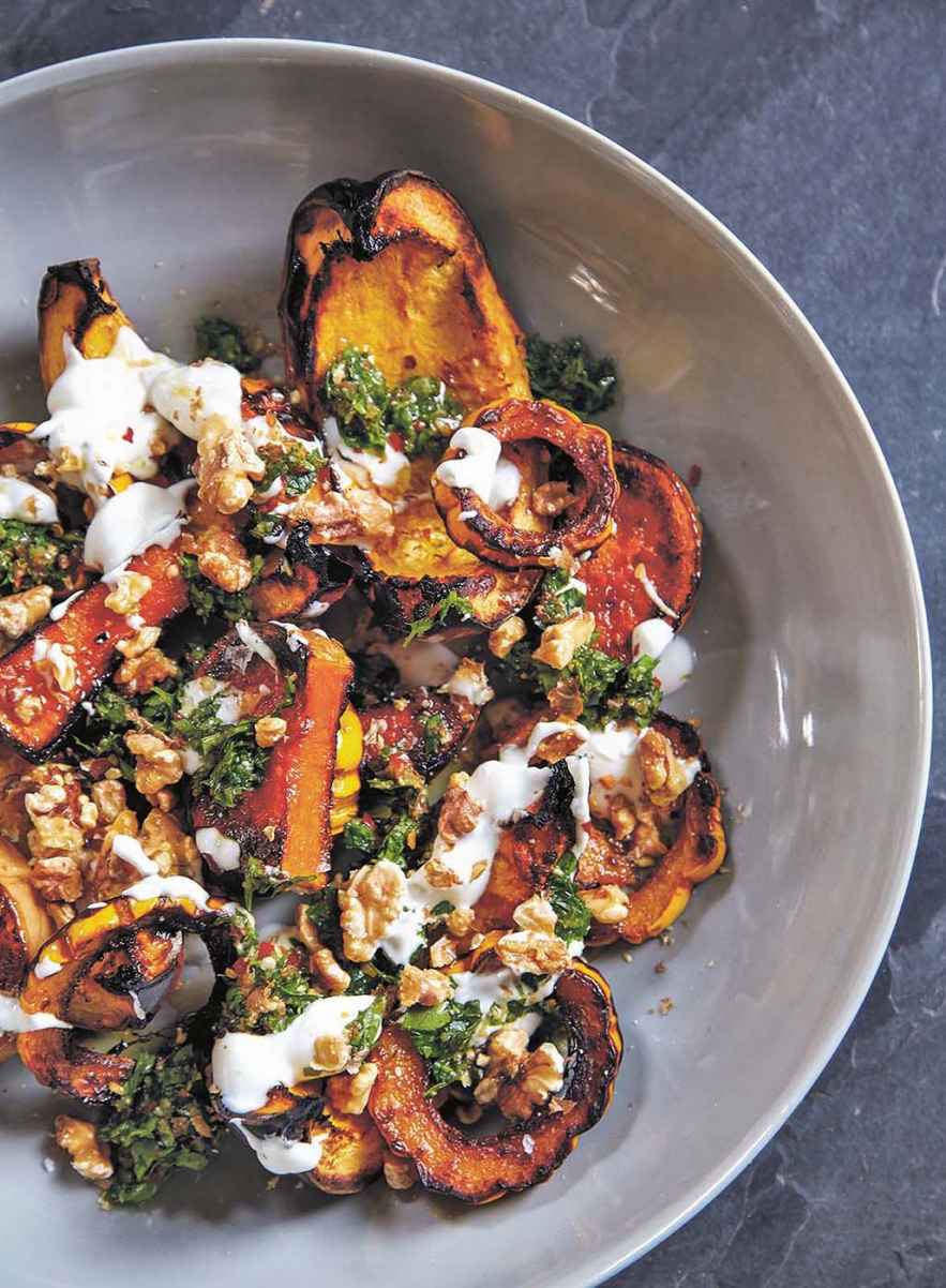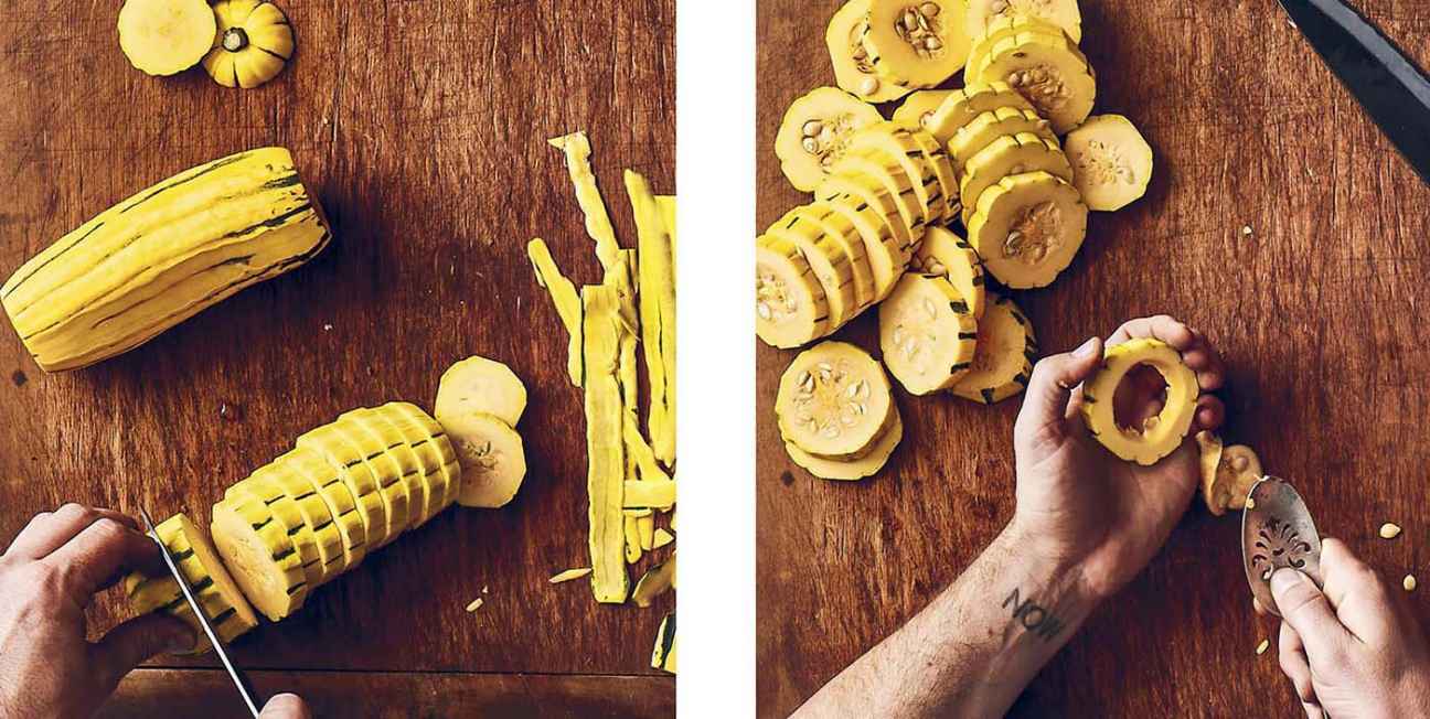As each microseason unfolds, my impulse is to start out using the new vegetables raw, when textures are juicy-crisp and I can taste the full essence of the thing itself. I recommend you do the same, even if you’ve never considered eating a particular vegetable this way. Raw winter squash? When sliced thin, drizzled with brown butter, and tossed with pecans and currants, um, yes, please.