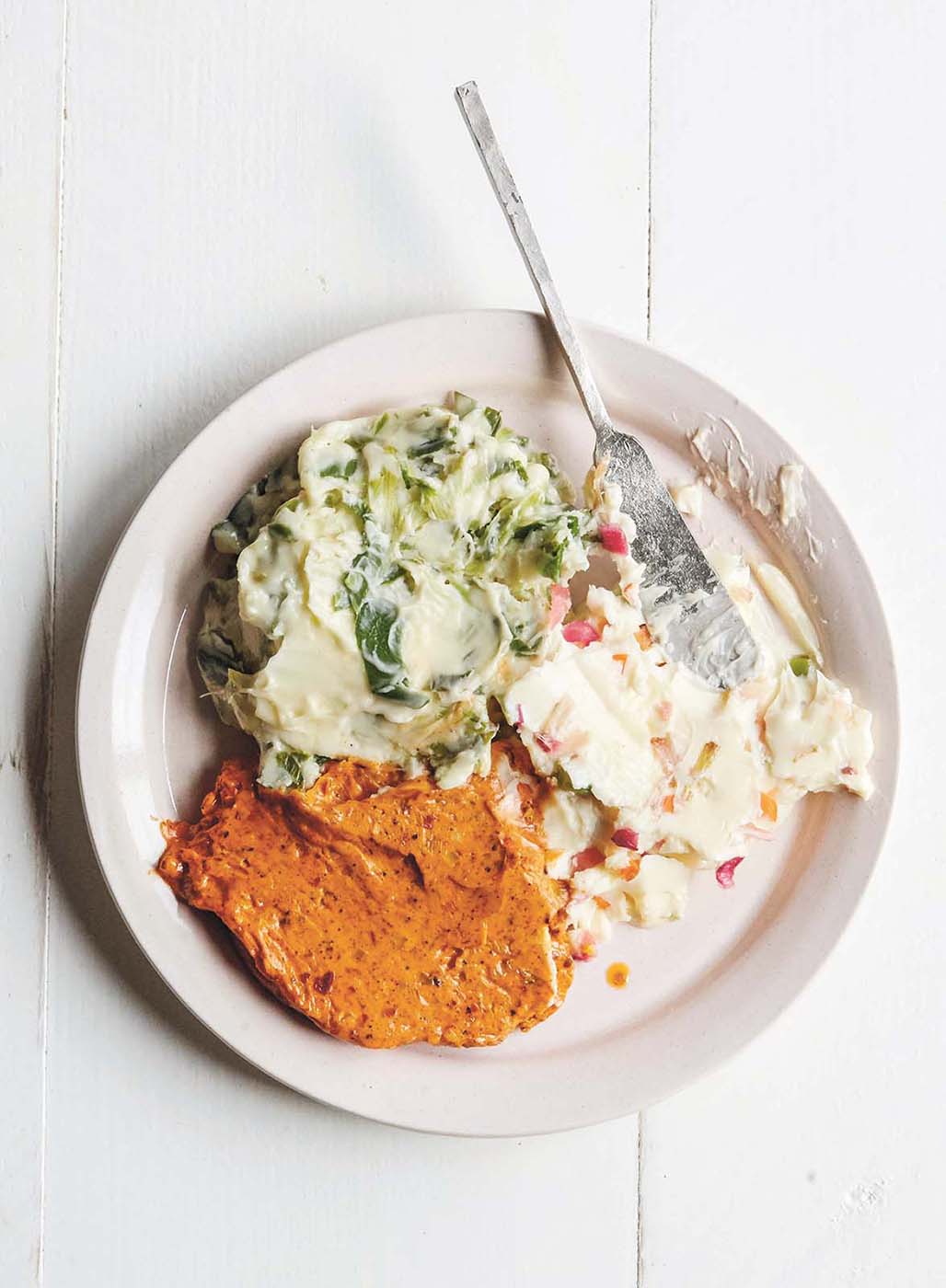 Though my recipes are mostly simple, real cooking takes time . . . but less time if you plan ahead, break up the work, and have everything on hand. In My Larder , I recommend my indispensables, such as anchovies, cheeses, and canned tuna, with my favorite forms and brands. In Go-To Recipes , I share the basics like croutons and roasted almonds, but also yummy condiments like Green Garlic Butter, Whipped Ricotta, Caper-Raisin Vinaigrette, Charred Scallion Salsa Verde, and Pistachio Butter. Each one is super versatile and keeps for weeks; I suggest ideas for using them beyond the recipes in this book. And we can’t forget pickles—I make quick refrigerator pickles out of everything that enters my kitchen; I’ve mapped out a few favorites for you on Pickles: Six Seasons in a Jar .