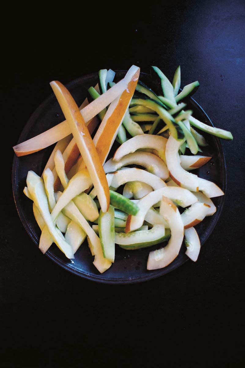 I hope you’ll like my food and find it delicious, even revelatory—who knew you could make pesto from fava beans and pistachios, cook celery root as you would a steak, grill unripe tomatoes to pair with watermelon? But I hope you never find it to be fussy. I hate chef books that presume home cooks have the time, money, and skills—and desire—to replicate restaurant-style recipes. Not to mention the dishwashing staff! We serve a lot of the dishes in this book at my restaurant, Ava Gene’s in Portland, Oregon, but the techniques and ingredients are mostly quite ordinary. You’ll need to do some prepping and cooking and seasoning, but the soil and rain and sun will have done the rest for you. Embrace the seasons and good cooking will follow.