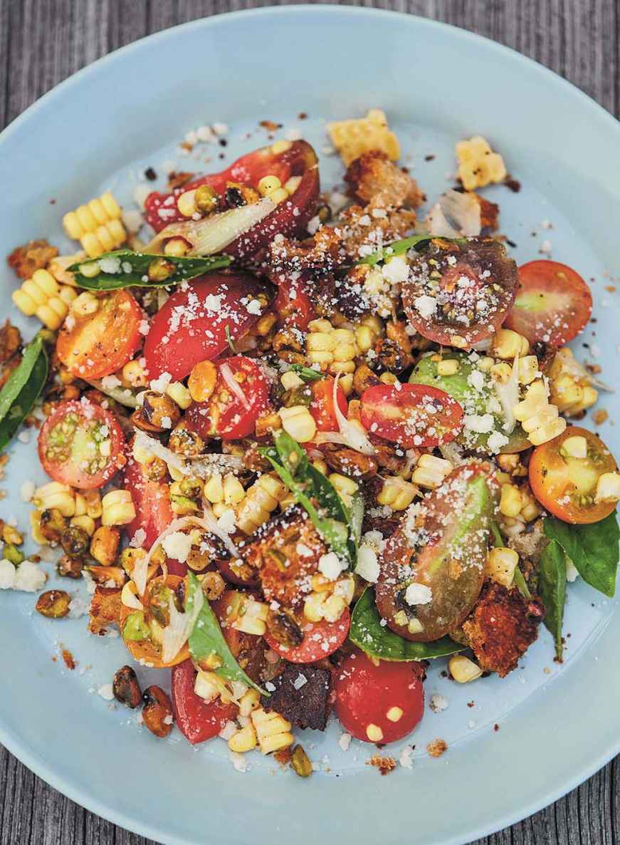 Prowling around my neighbors’ gardens gave me a hint that there was more to food than what was in the cupboards. Some early moments are etched on my palate, maybe even on my soul: Biting into a sun-warmed, plucked-from-the-vine tomato with a saltshaker in my hand. Pulling a stalk of rhubarb from the ground, blowing off the dirt, and dipping it into a sugar jar. The elemental pleasures of those close-to-the-earth foods have stuck with me.