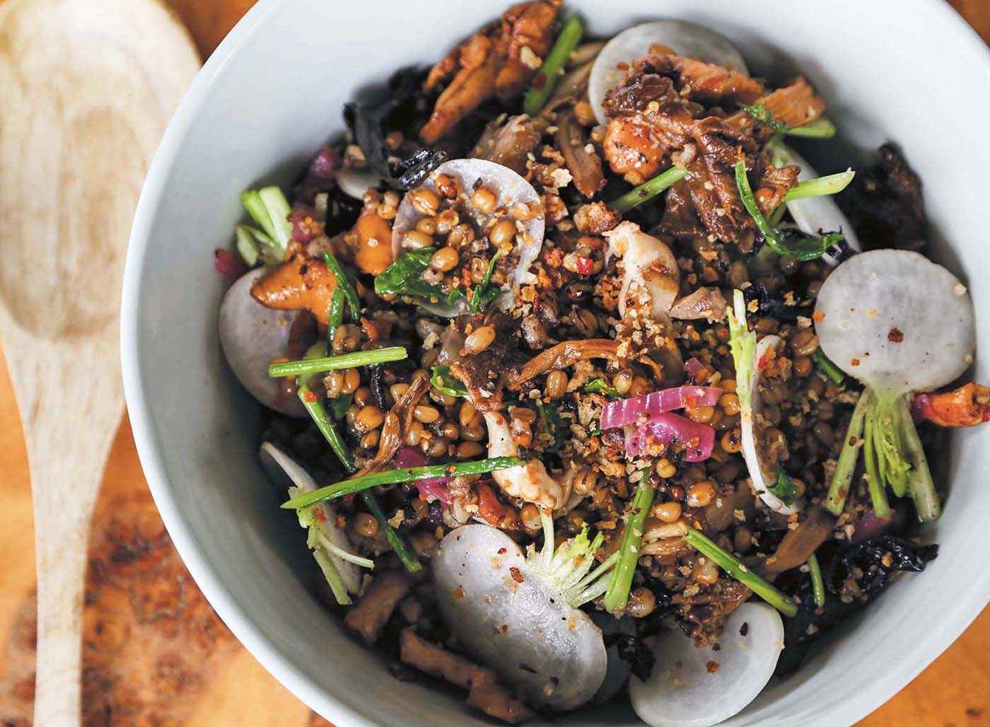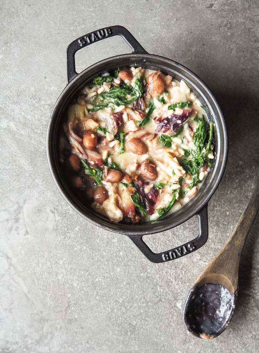 I use these recipes throughout the book to enhance, support, texturize, blend with, and otherwise collaborate with fresh vegetables to make wonderful dishes. A few hours spent cooking on a quiet Sunday will let you load your fridge or cupboard with some of these components, making executing an amazing midweek dinner both possible and fun. Many are also freezable, so you can consume them over time, but you’ll find that most are so delightfully versatile that you’ll easily incorporate them into meals. We share a few ideas to get you started.