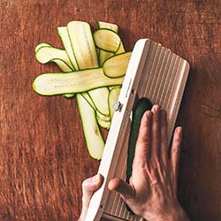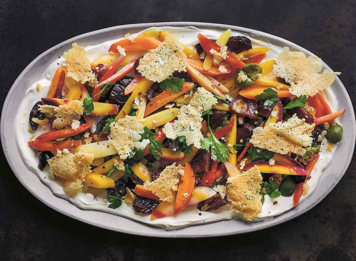 Fricos are cheese crisps from the Friuli region of Italy. They’re traditionally made with Montasio cheese, but I make them with Parmigiano-Reggiano. The cheese gets baked and then cooled, at which point it becomes very fragile and crisp. I like them simply in their flat, natural shape, but some people like to drape them over a rolling pin to give them a curved “tuile” shape. I’ll add fricos to vegetable salads, either whole or broken into shards.