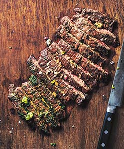Butters on a flank steak: Watercress, pickled vegetable, and mushroom