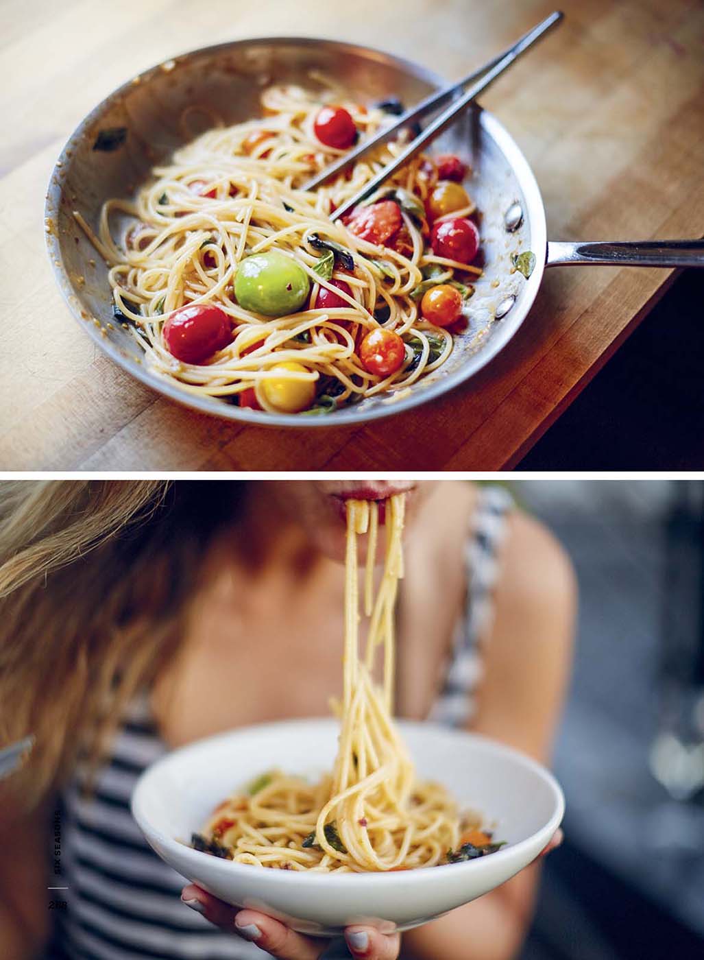 → Toss with simple pasta, like spaghetti or angel hair.