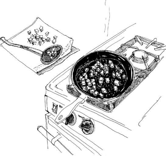 basic approaches that will allow you to cook tofu with particular ease and speed. The results can be enjoyed immediately (try Fried Tofu, below, with a peanut sauce or sprinkled with salt), incorporated into other dishes (see Tofu and Mushrooms Braised in a Sweet-and-Sour Sauce