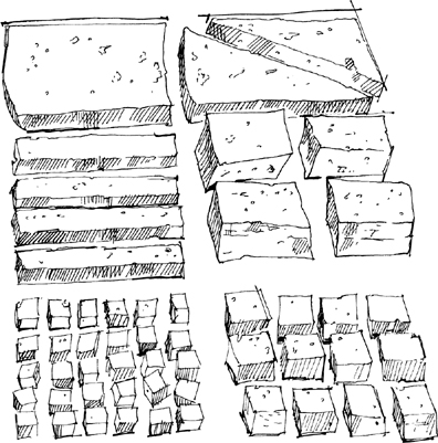Along with the notion that tofu will become whatever you wish by virtue of its seasonings comes the idea of the marinade, the liquid means of transformation. I have always felt that marinades are terribly overrated, and that they don’t really accomplish much except to flavor the very outside of the tofu itself. When I was the chef at Greens restaurant, we used to keep blocks of firm Chinese tofu submerged for days in an extremely strong marinade of red wine, mustard, dried mushrooms, soy sauce, and other ingredients, but it never did much more than affect the appearance and taste of the tofu’s outermost surfaces. When we cut into it, it was pure white, the marinade clearly never having penetrated the tofu.