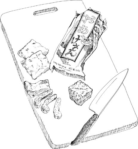 I have strived to make this book an easy one to use, one that doesn’t rely on exotic ingredients or techniques. While I enjoy tofu in the context of traditional Asian cuisines, I’m not an expert in these cuisines and don’t mean to send you scurrying for the esoteric ingredients that give them their true characters. If you wish to learn about a cuisine in more depth, I know that you’ll turn, as will I, to the real experts. For this book, most of the Asian ingredients called for are available in your supermarket. Yet there is much more to discover if you set about exploring Asian grocery stores. (I say Asian because often a single market caters to the entire pan-Asian community by selling foods from Japan, China, Vietnam, Thailand, India, Korea.) While row after row of unfamiliar foods with unrecognizable labels can be daunting, there are many useful ingredients to be ferreted out that go especially well with tofu, starting with the tofu itself.