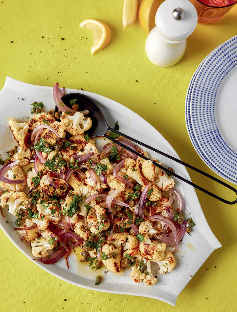Sheet Pan Cauliflower with Crispy Onions and Caper-Parsley Vinaigrette