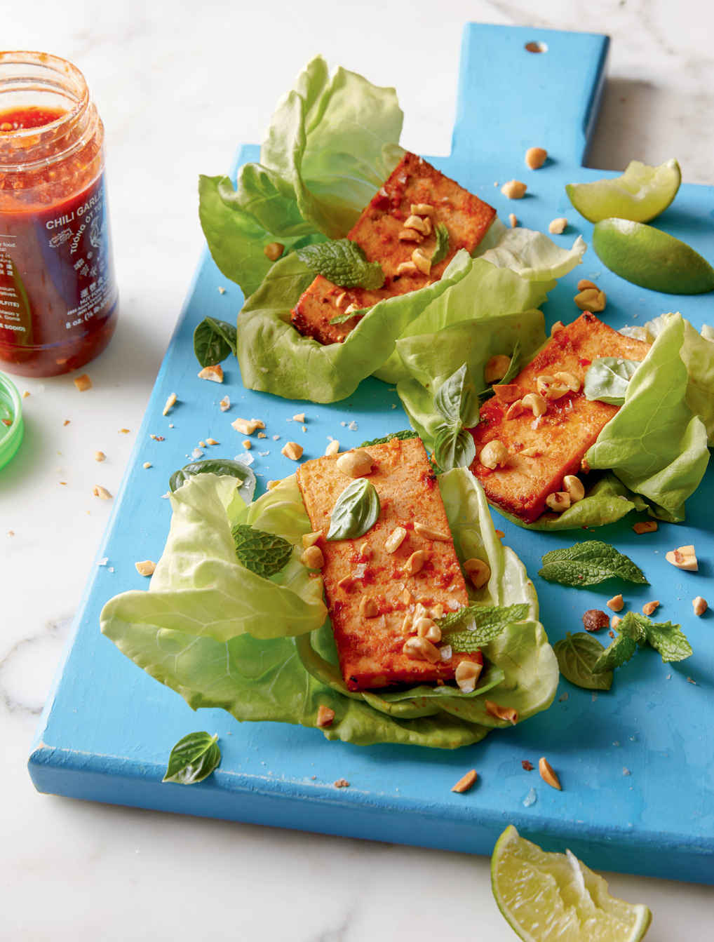 Wraps, chile tofu lettuce, with smoked salt
