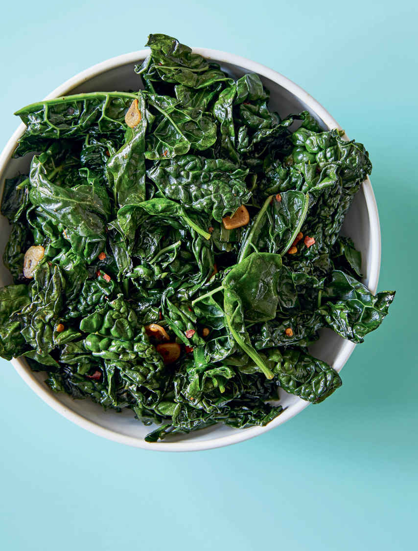 umami greens with garlic and