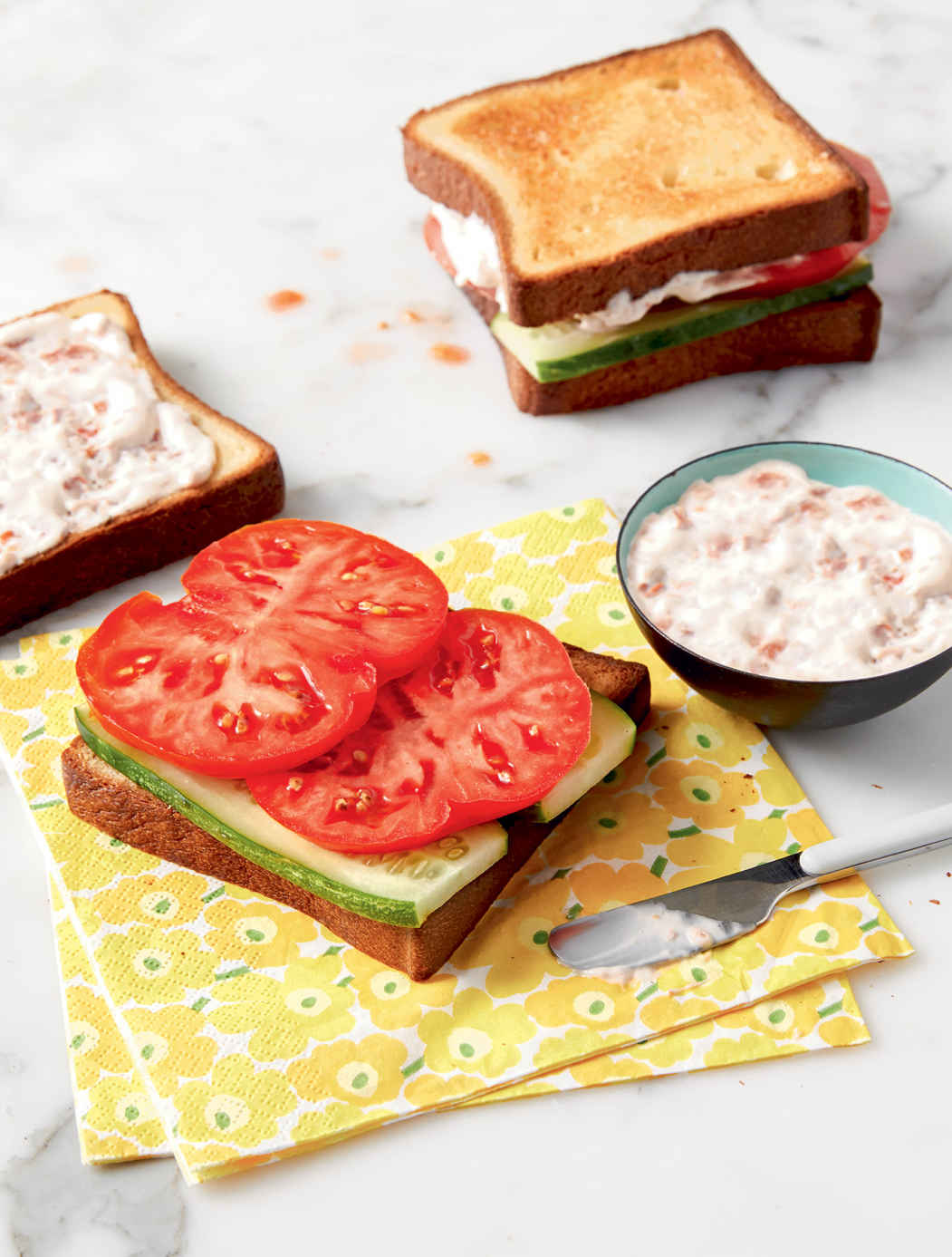 tomato-cucumber sandwiches with roasted tomato mayo
