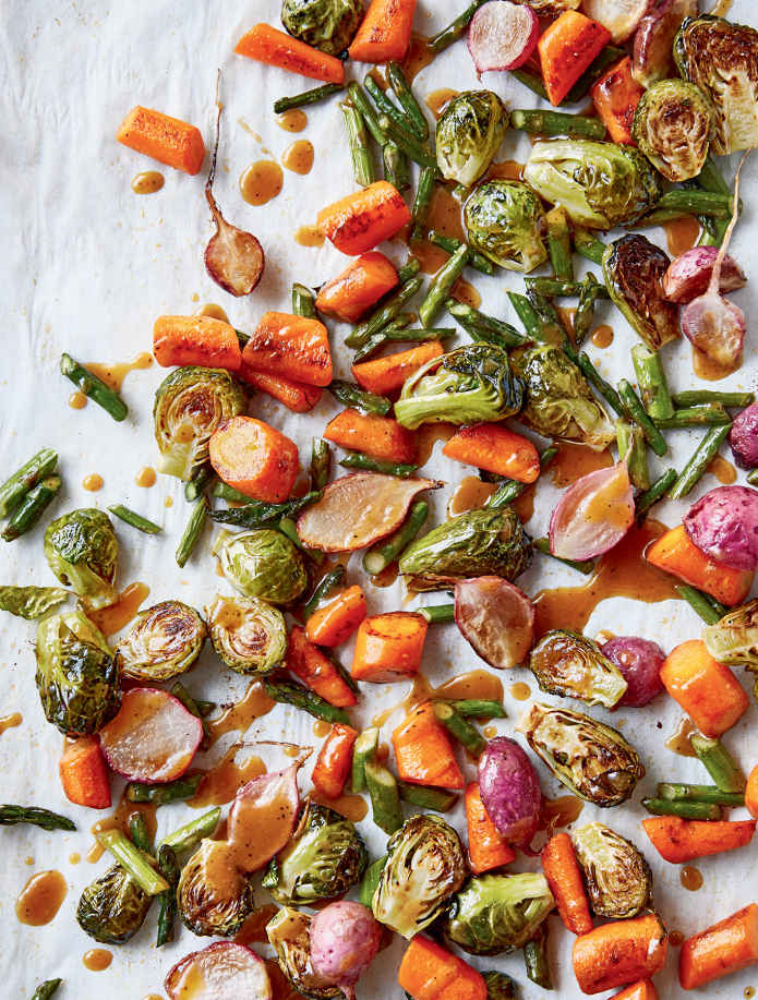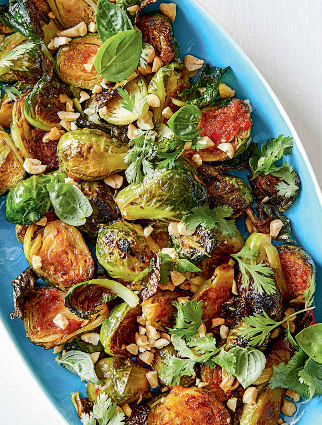 sheet pan chile-soy glazed Brussels sprouts