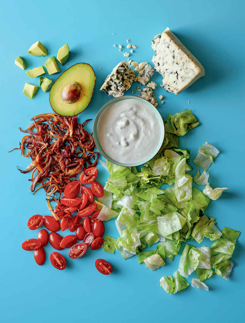 Chopped Iceberg with Crispy, Smoky Onions and Blue Cheese Dressing