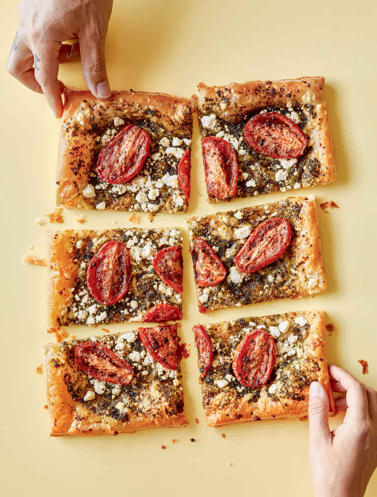 tart with pesto and goat’s milk cheese