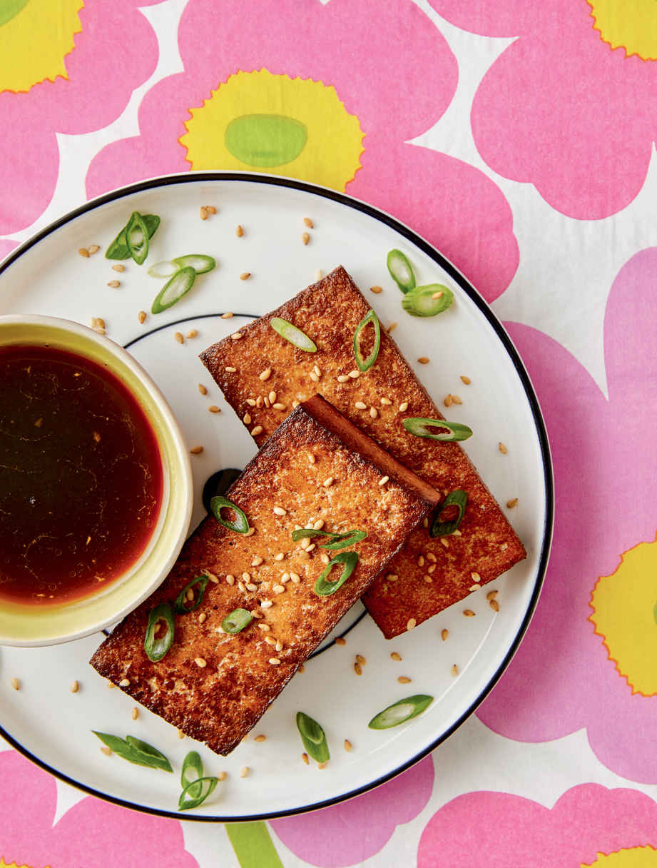 Tea-smoked tofu with soy-scallion sauce